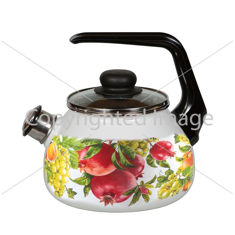 Article: 1RA12; Quantity in original packing: 1; Quantity per package: 4; Displacement: 2.0 liters; Material: Enamelled steel; Trademark: STEELEMAL; Type of handle: Plastic, fixed; Whistle: yes; Decor: Yes; Cookers: Ceramic, gas, induction, electric; Country of manufacture: Russia; Diameter (cm): 12; Available in stock: 14 The model is made according to a special mold with a side wall thickness of 0.4 mm. The three-layer bottom, made using encapsulation technology, does not deform and serves for even distribution of heat. Cool nylon handle with a button to open the spout. A safe and loud whistle will inform you in time that the water has boiled. Suitable for all types of heating surfaces